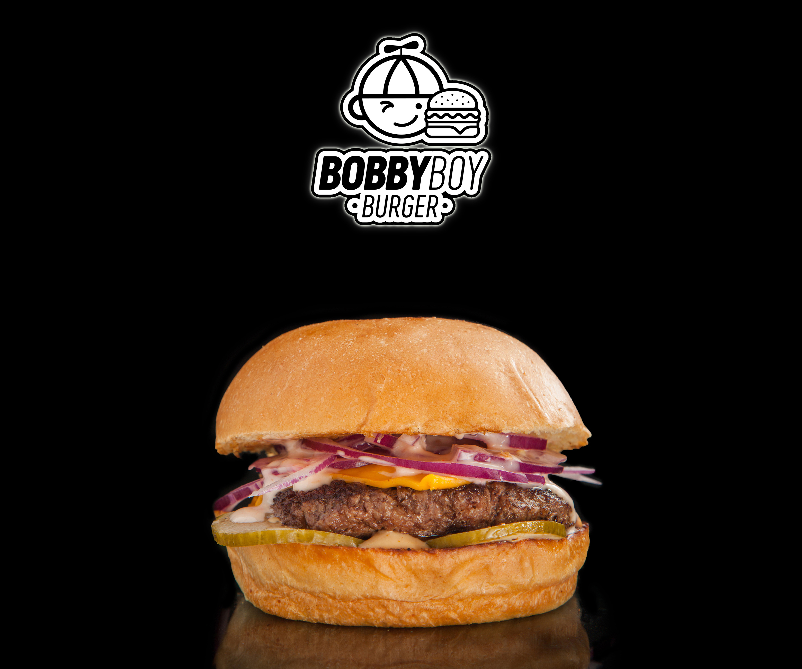 150grs de carne premium, cebolla morada ,queso cheddar, tocino ahumado, pepinillos, salsa Bobby picante y salsa Bobby.